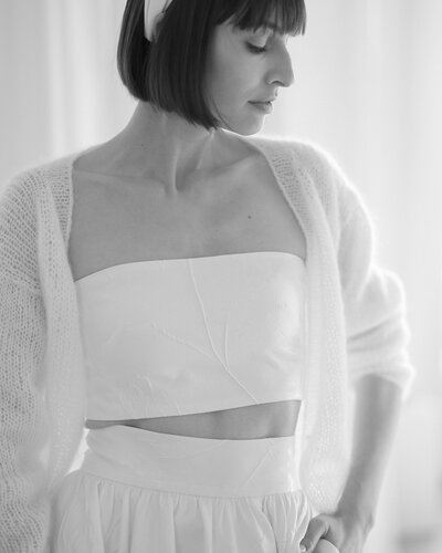 Das Bandeau Top ist im Rücken über viele kleine Knöpfe zu schließen.