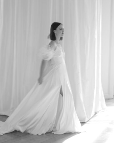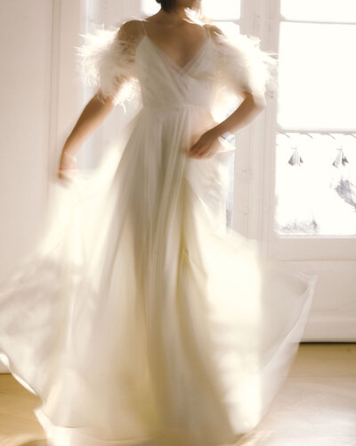 Das Seidenkleid ISA ist aus feinster, elastischer crepe de chine Seide gefertigt. Die Highlights sind die lange Schleppe, der Origami - Einsatz aus Seidenorganza am Dekolleté und der hohe Schlitz in der vorderen Mitte. Eine tolle Kombination zu diesem Kleid ist der ISA cape oder JANNE Seidenorganzabluse.