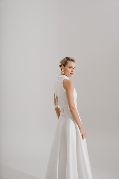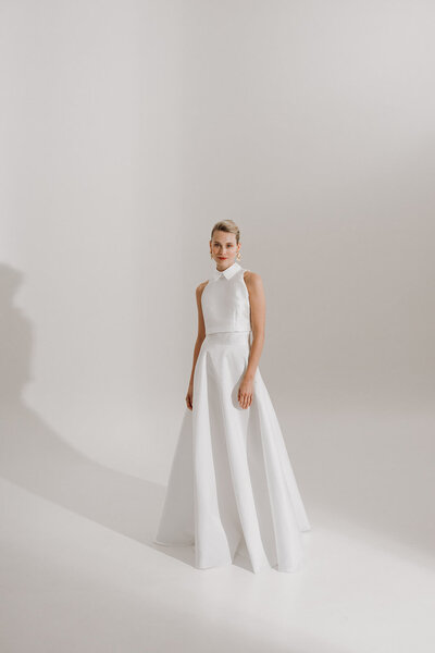 Studio Line ist die konfektionierte Linie, welche durch minimalistische Designs, puristische Ästhetik und legeren Chic in den Bann zieht. Umfasst hauptsächlich Outfits für das Standesamt. Durch verschiedene Kombinationen aus dem Sortiment können diese Kleider auch perfekt zu einer freien oder kirchlichen Trauung getragen werden.