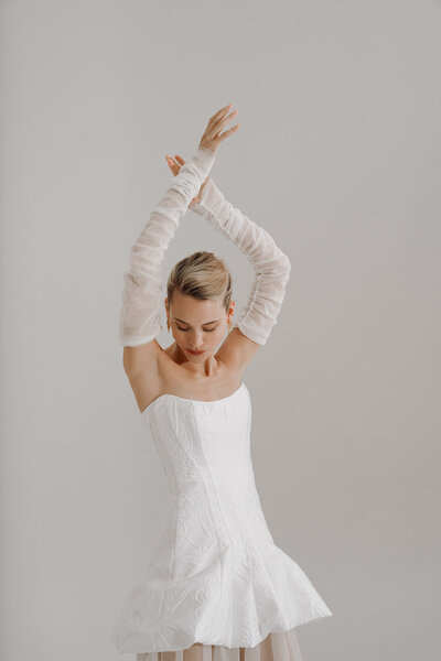 Komplettiert wird der Look durch KAI Gloves - zarte Statement pieces, die Couture Charakter verleihen.