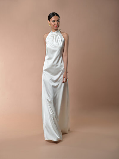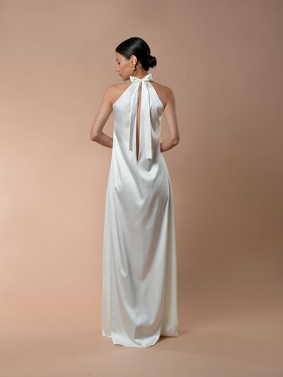 ELIS fällt ebenfalls unter die Kategorie Slipdress. 100% Seide und somit einen extrem hohen Tragecomfort. Vorne mit einem fließenden Wasserfallausschnitt versehen. Am Rücken tief geschnitten und mit sich kreuzenden Trägern verziert.